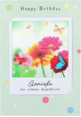 Schöne Grüße aus der dritten Dimension: Diese Foto-Klappkarte wirkt durch ihren hochwertigen 3D-Effekt absolut realistisch und plastisch! Mit Motiv zum Geburtstag mit Fällt-auf-Garantie!