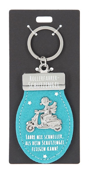 Ein süßer Schutzengel für die Liebsten unterwegs: Schlüsselanhänger aus Filz und Metall (Zinklegierung) in Auto-, Motorrad-, Motorroller- und Fahrradform. Mit kleiner Botschaft wie zum Beispiel "Allzeit gute Fahrt!" oder "Ich passe immer auf dich auf!"