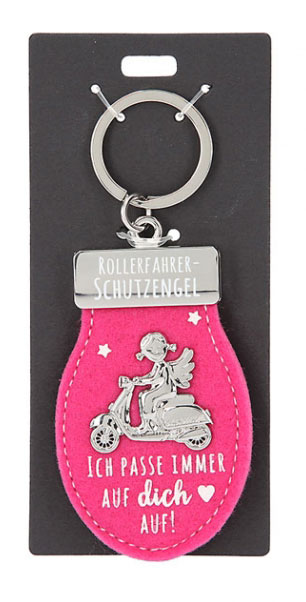 Ein süßer Schutzengel für die Liebsten unterwegs: Schlüsselanhänger aus Filz und Metall (Zinklegierung) in Auto-, Motorrad-, Motorroller- und Fahrradform. Mit kleiner Botschaft wie zum Beispiel "Allzeit gute Fahrt!" oder "Ich passe immer auf dich auf!"