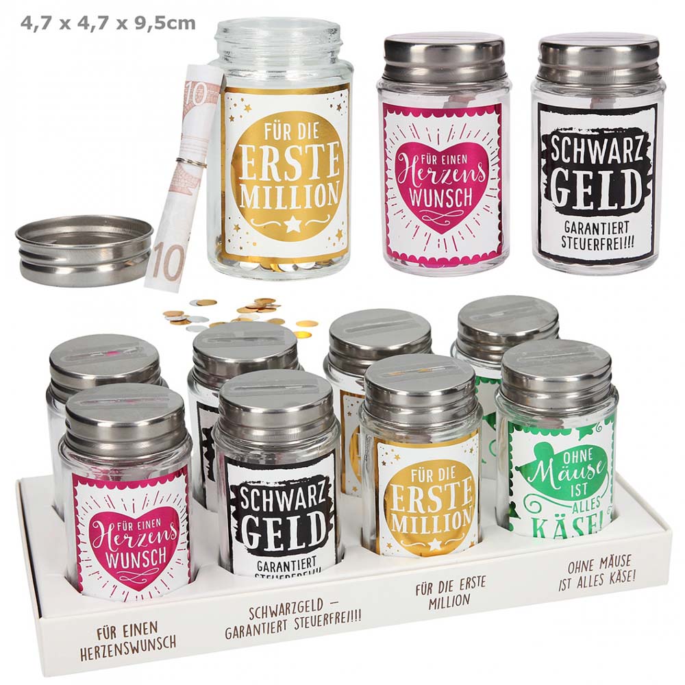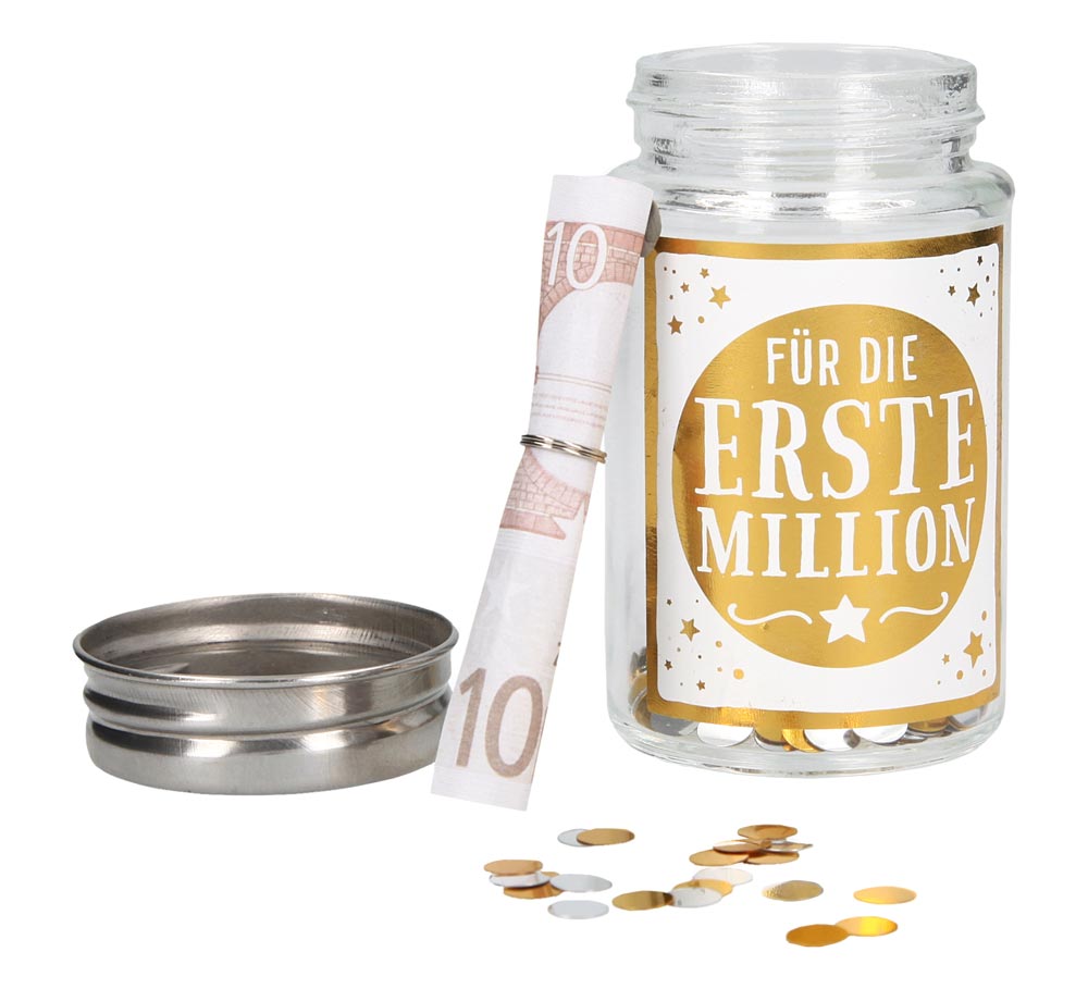 Diese Gläser haben es in sich - und zwar nicht nur farblich auf die verschiedenen Designs abgestimmtes Konfetti, sondern Platz für ein Geldgeschenk oder einen gefalteten Gutschein. Die Schraubdeckel haben einen Geldschlitz, sodass die Gläser nach dem Verschenken auch weiterhin als kleine Spardose genutzt werden können. Ein Geschenk, dass schon beim Ansehen Freude macht - und noch mehr beim Hineinsehen!