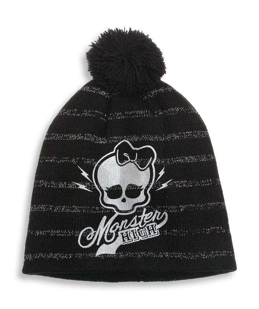 Monster High Winter Mütze Schwarz mit Bommel Cooles Design Teilweise mit Fotodruck Material: 100% Polyacryl [pflegeleicht] Größen 52 - 54 cm Mattel Lizenzartikel Neuware