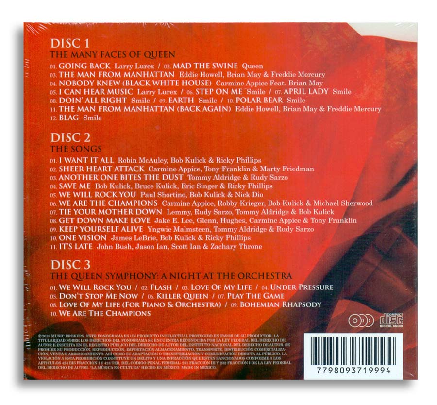 Obwohl sie verschiedene Titel aufnahmen, erschien letztlich nur eine Promo Single der Band im Juli 1969 auf Mercury Records mit den Tracks »Earth« und »Step On Me«. Alle sechs Smile Aufnahmen sind hier enthalten. Heavy Metal Fans haben Queen immer geliebt, trotz Freddie Mercurys pseudo-dramatischen Bühnenshows, die mehr an Liza Minnelli als an Robert Plant erinnerten. Aus diesem Grund ist CD 2 dieser Kollektion den Songs der Band, dargeboten von einigen der größten Namen des Metals, gewidmet.
