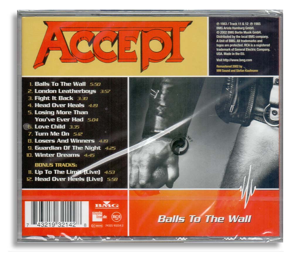 Die deutsche Heavy Metal-Fraktion besaß durchaus ihre Helden. Manch einer hatte Accept als die deutschen Judas Priest beschrieben, aber das kam der Realität nicht nahe. Accept hinterließen nach ihren Konzerten ein in jeder Beziehung atemloses Publikum, das begierig nach mehr verlangte. "Balls To The Walls" aus dem Jahr 1984 mit Knallern wie "London Leatherboys", "Turn Me On" und "Fight It Back" war das erfolgreichste Longplay des Quintetts. Quelle: jpc.de